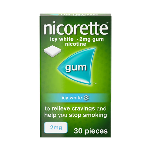 What is Nicorette Gum Icy White 2mg? Nicorette Gum Icy White 2mg 30's relieves cravings and helps you stop smoking. This medicated chewing gum also...